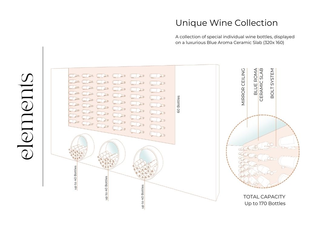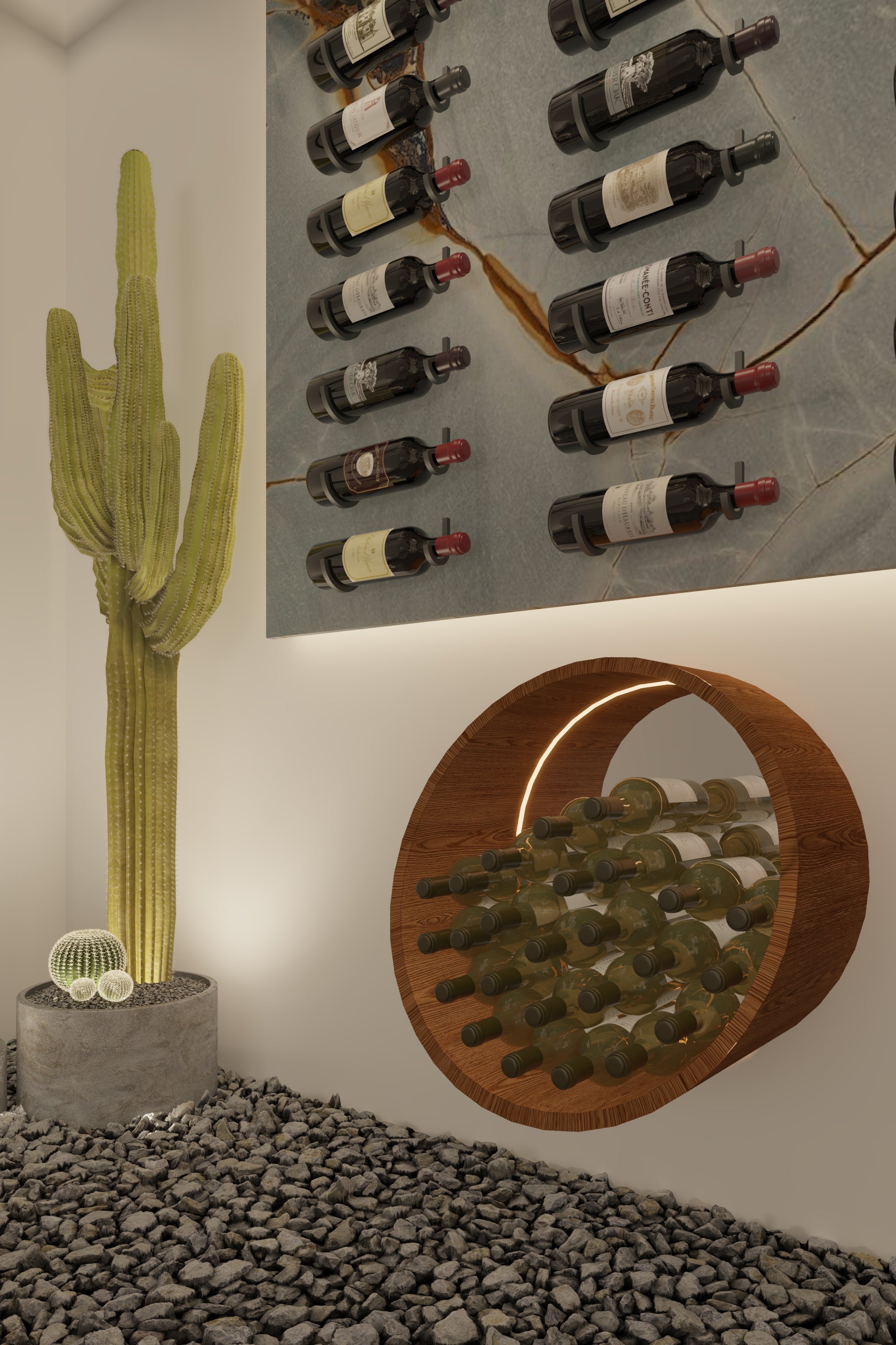 Serenity in Marbella fulfills this vision with effortlessgrace. Designed to hold over 170 bottles, it featuresminimalist lines, hand-selected natural materials, andsubtle lighting that create a seamless connectionbetween wine and nature. The result is a cellar thatreflects both the tranquillity of its setting and therefined taste of its owner.